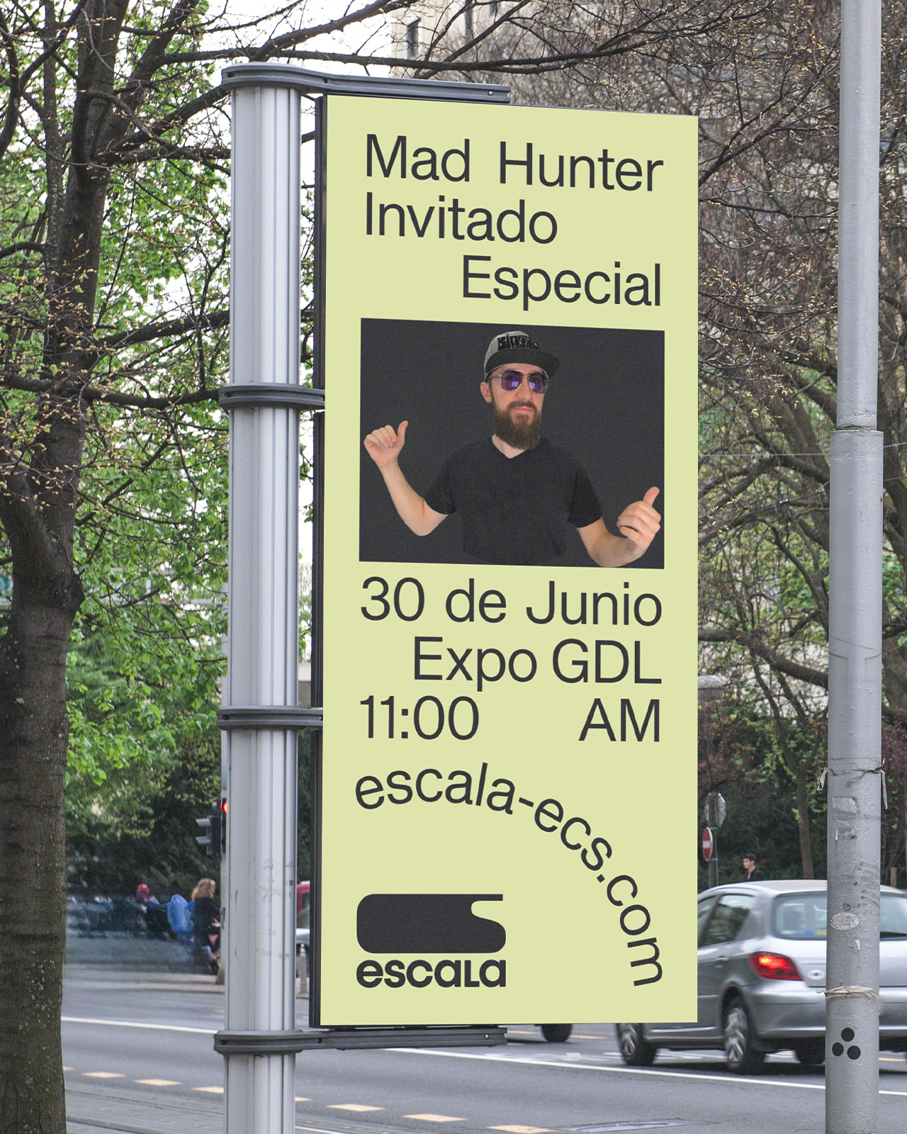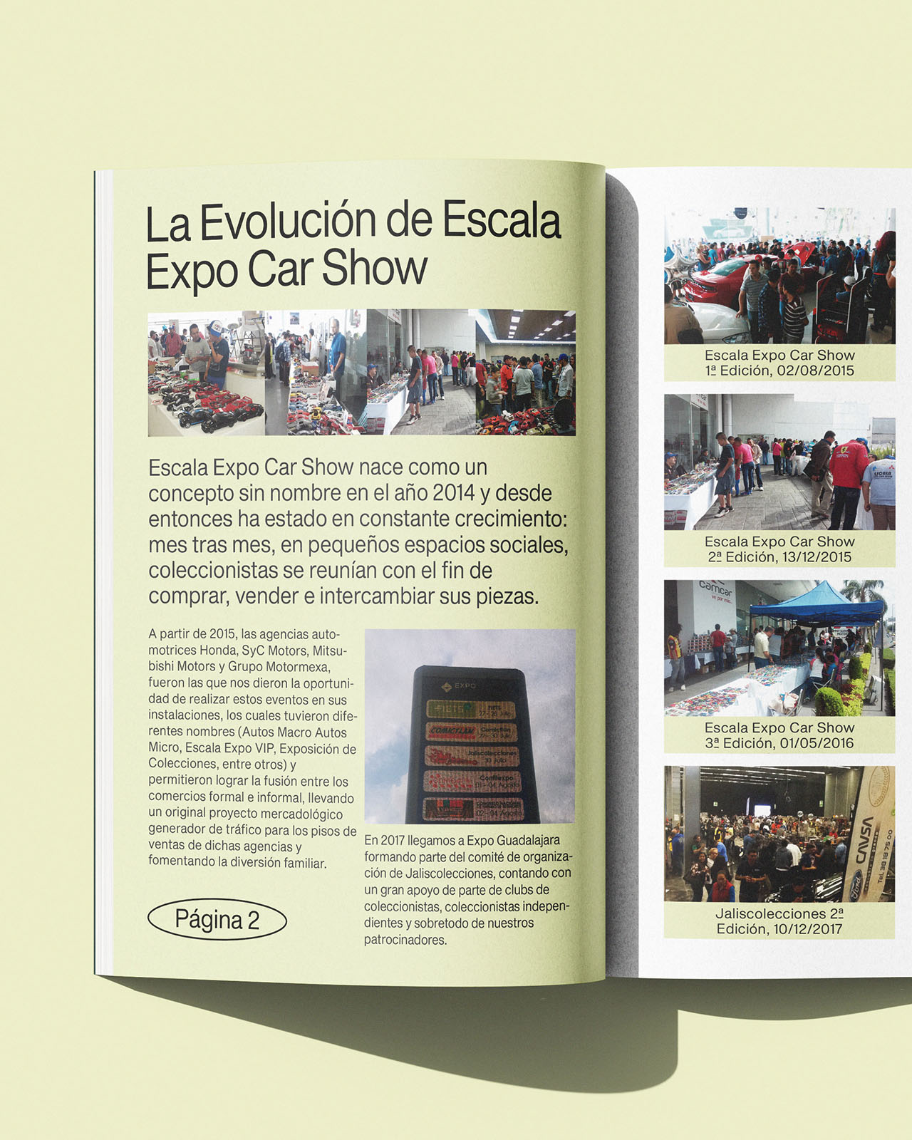 When designing the visual identity for Escala Expo Car Show —an event that brings together scale car collectors— I focused on conveying a sense of energy and togetherness through the use of bright green as the main color, paired with a Helvetica-like, single-weight font used throughout the identity.